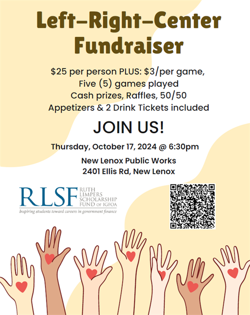 Join us for an exciting evening at the Ruth Limpers' Scholarship Fundraiser: Left-Right-Center on October 17, 2024! The event kicks off at 6:30 PM at the New Lenox Public Works building, located at 2401 Ellis Rd., New Lenox, Illinois.
