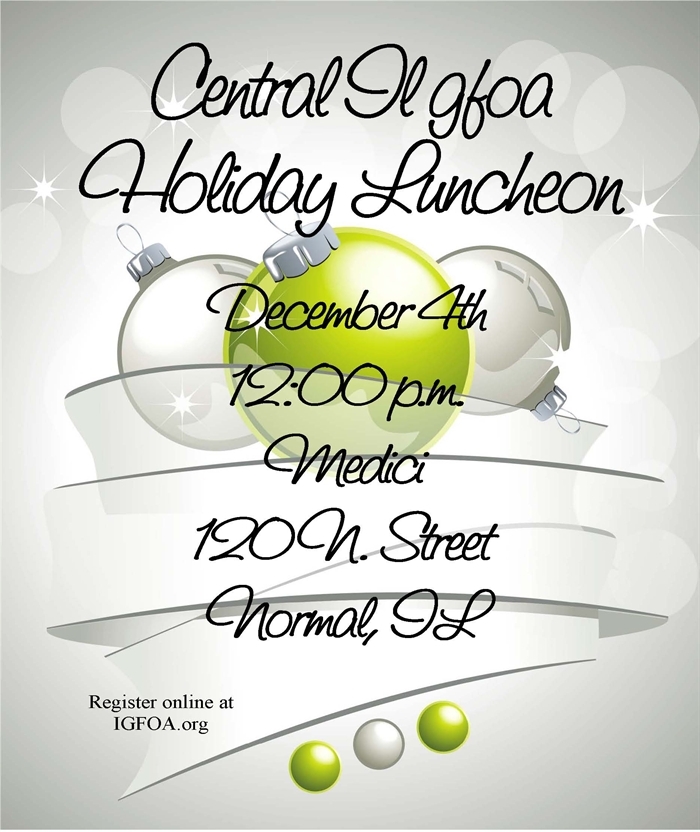 If you are unable to attend, please contact IGFOA at 630-942-6587 or info@igfoa.org as soon as possible. A $10 cancellation fee will be charged for cancellations up to November 27, 2015. Cancellations after November 27, 2015 and no-shows are responsible for the full fee.