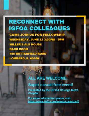 Register today for this FREE event sponsored by the Chicago Metro Chapter! Come out and reconnect with IGFOA colleagues.