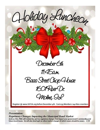 Join your colleagues at the Quad Cities Holiday Luncheon! Andrew Kim of PMA Financial will present Regulatory (and Other) Changes Impacting the Municipal Bond Market. This session will review the various regulatory changes that impact your government’s outstanding and future bond issues. It will also shed light on other market changes of which issuers should be aware.